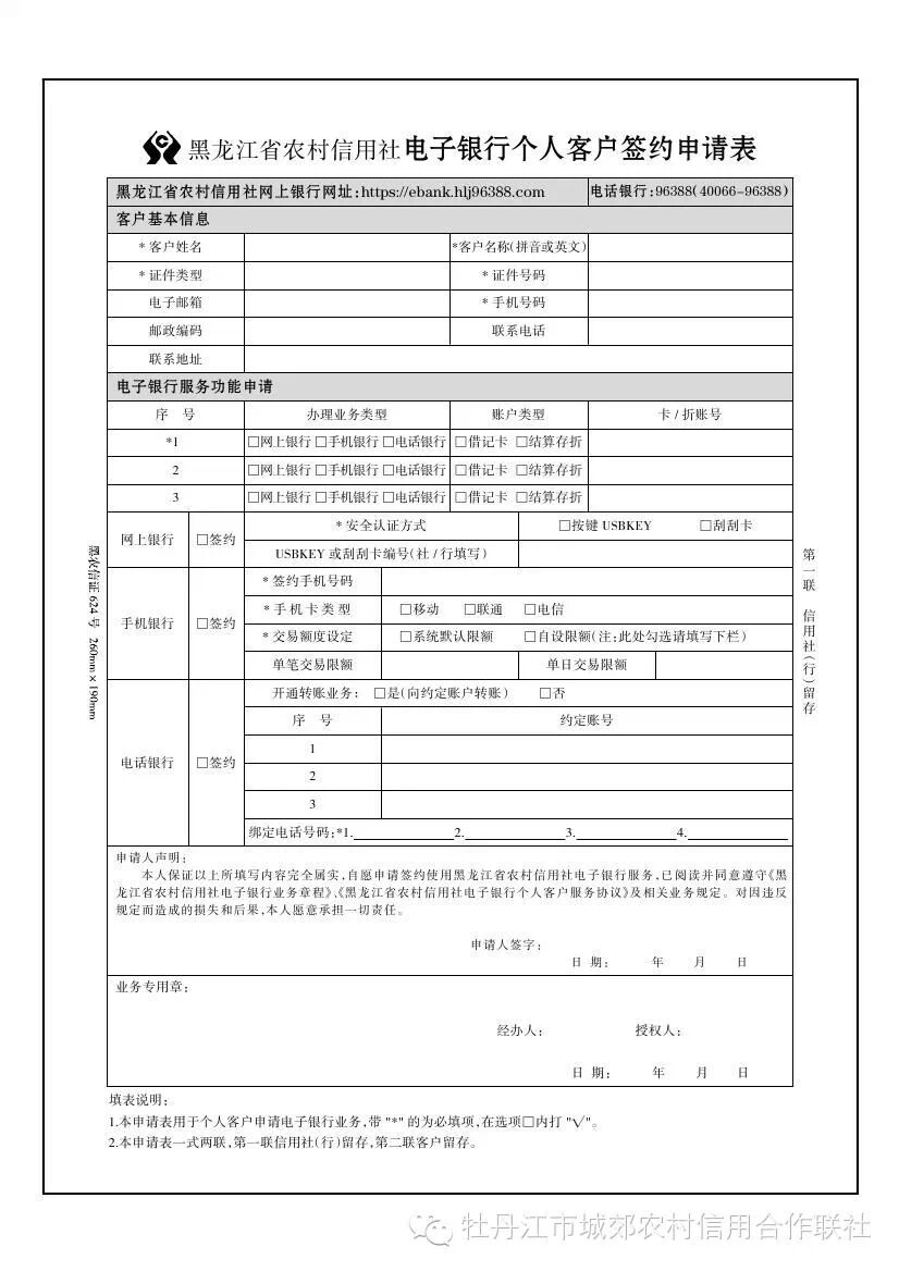 客户持有黑龙江省农村信用合作社鹤卡借记卡,IC卡的,均可在营业网点办理个人网银业务,开通后即可在互联网上方便快捷的进行账户管理、余额查询、转帐汇款等,免去您在营业网点等待的烦恼,跨行跨省转账均免收手续费.